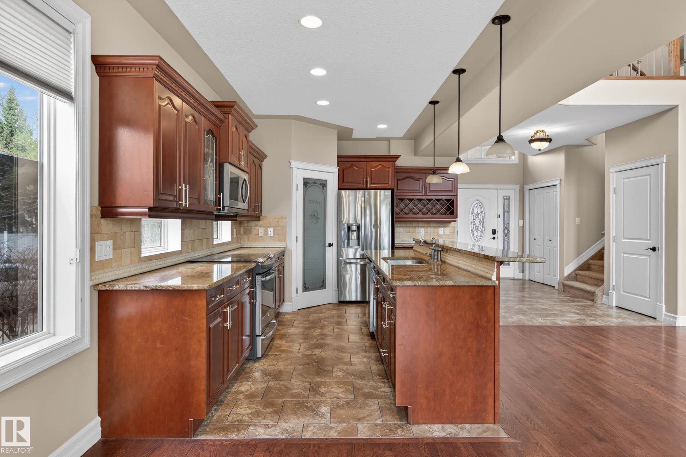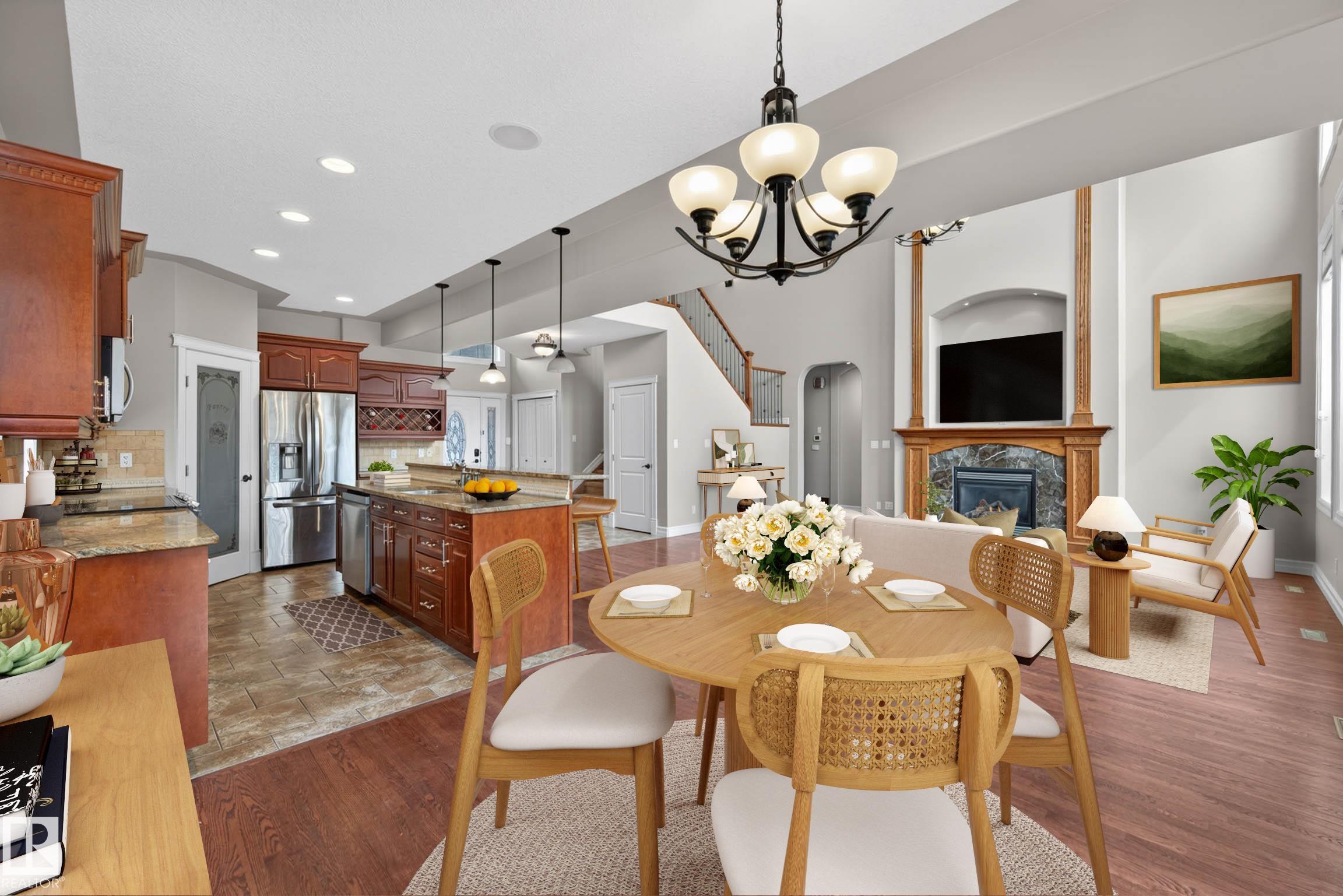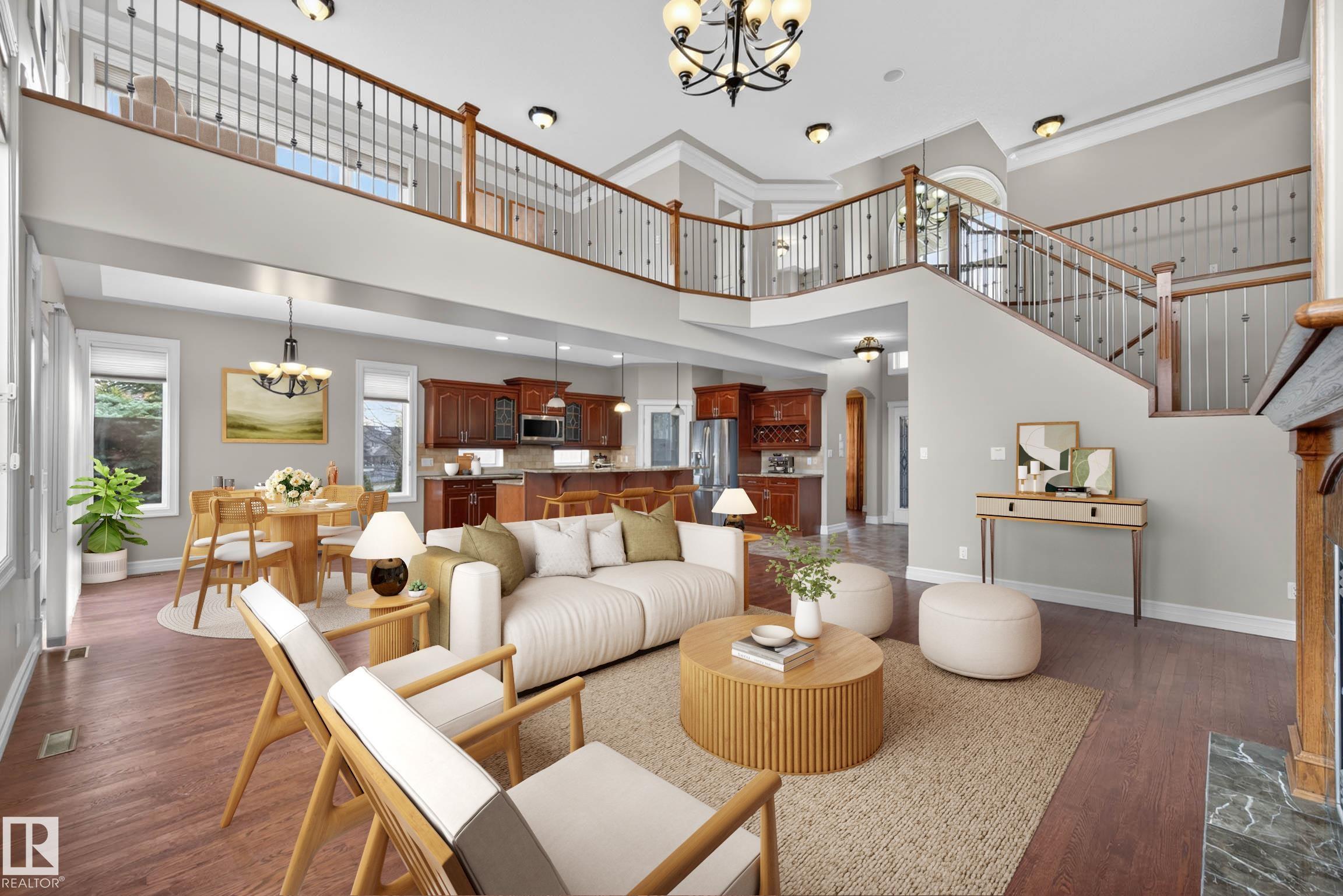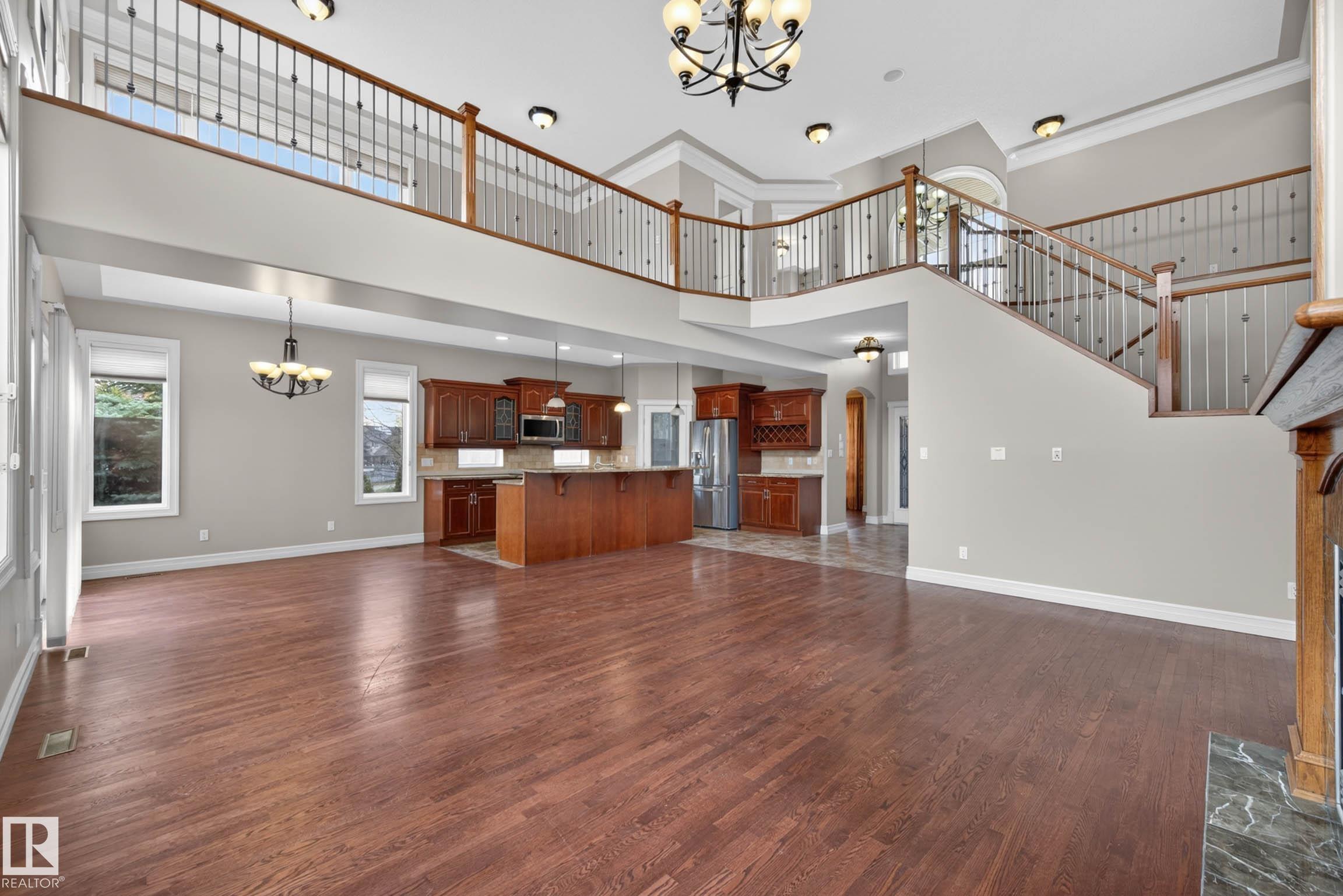 Welcome to prestigious Kingswood! This impressive 2-storey home is tucked away on the edge of a cul-de-sac on a large pie-shaped lot. With over 3,000 sq ft, 5 bedrooms, & 3 full bathrooms. The open-concept layout is filled with natural light & features soaring open-to-below ceilings, over 9-ft ceilings, a beautiful living room fireplace with mantel, & a spacious kitchen with abundant cabinetry and space. The breakfast nook opens onto one of 2 decks, while the main floor bedroom—with its own deck access—and ...