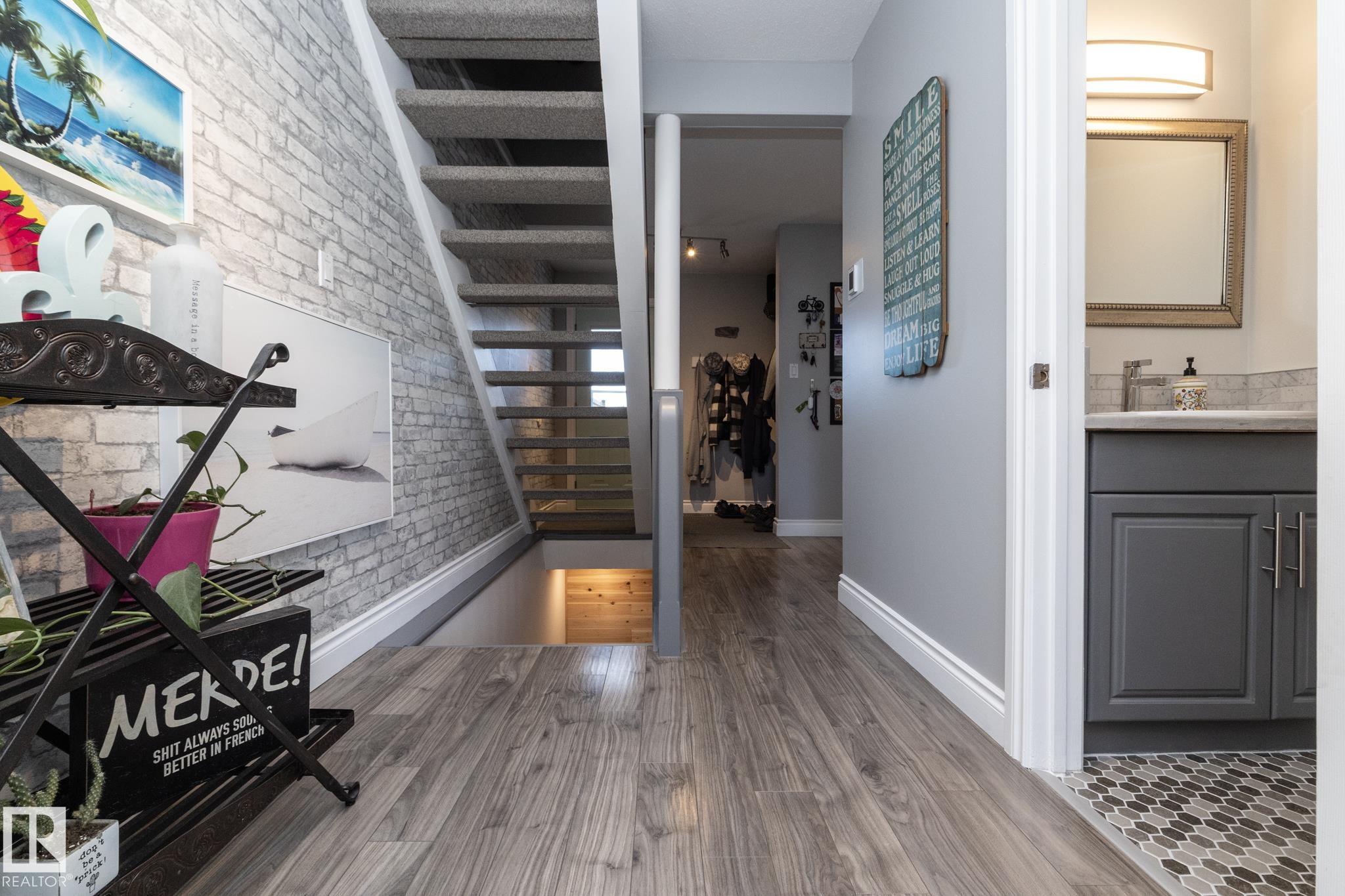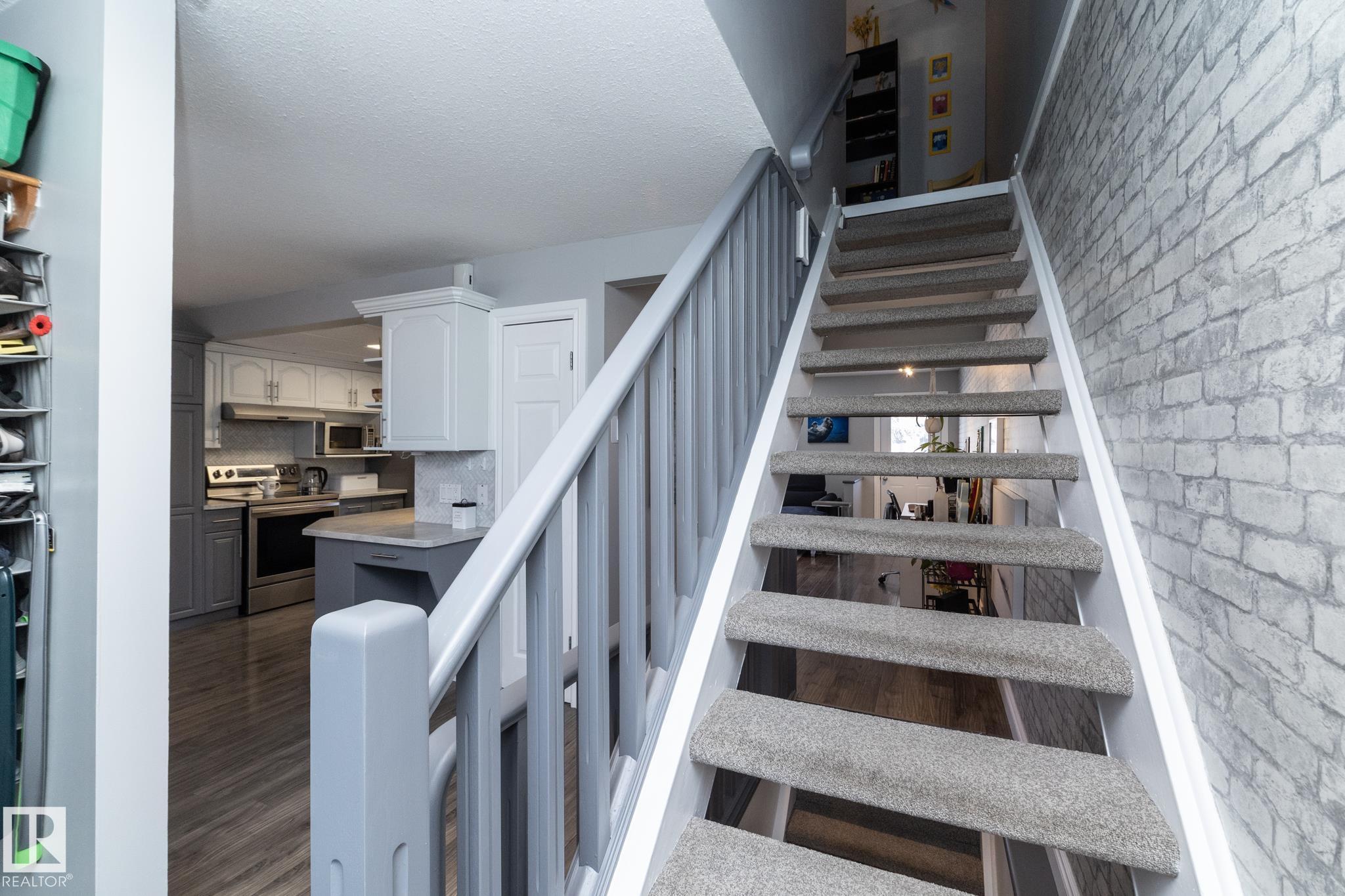 FANTASTIC END UNIT – FULLY FINISHED WITH A PARKING STALL. Pride of ownership is evident throughout this beautifully maintained home! Bright and spacious with abundant natural light, this move-in ready property features updated flooring and modern finishes throughout. The kitchen offers upgraded cabinetry, ample storage, and generous counter space. The living room is large and inviting, perfect for everyday living or entertaining. A convenient two-piece bath completes the main floor. Upstairs you’ll find thr...
