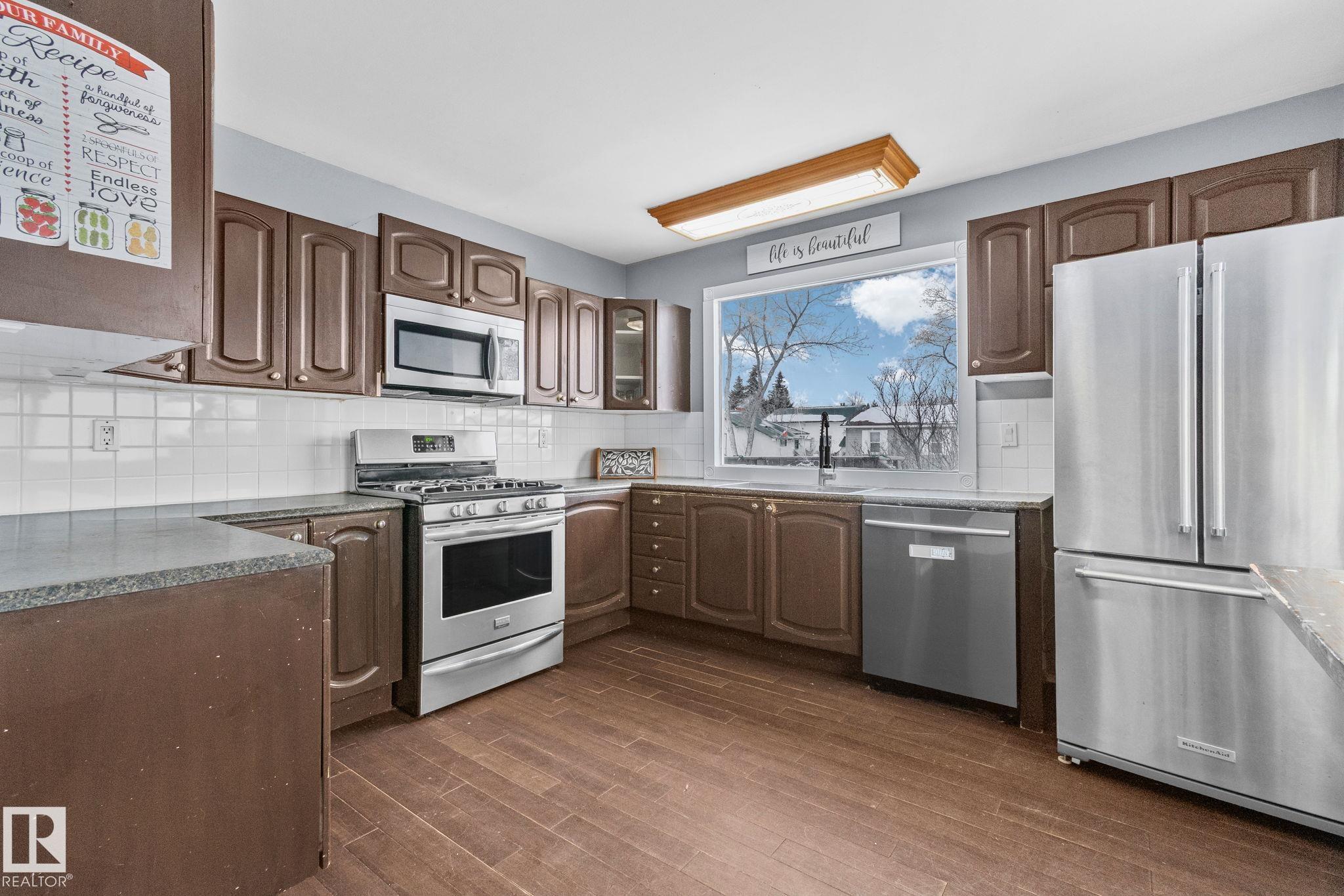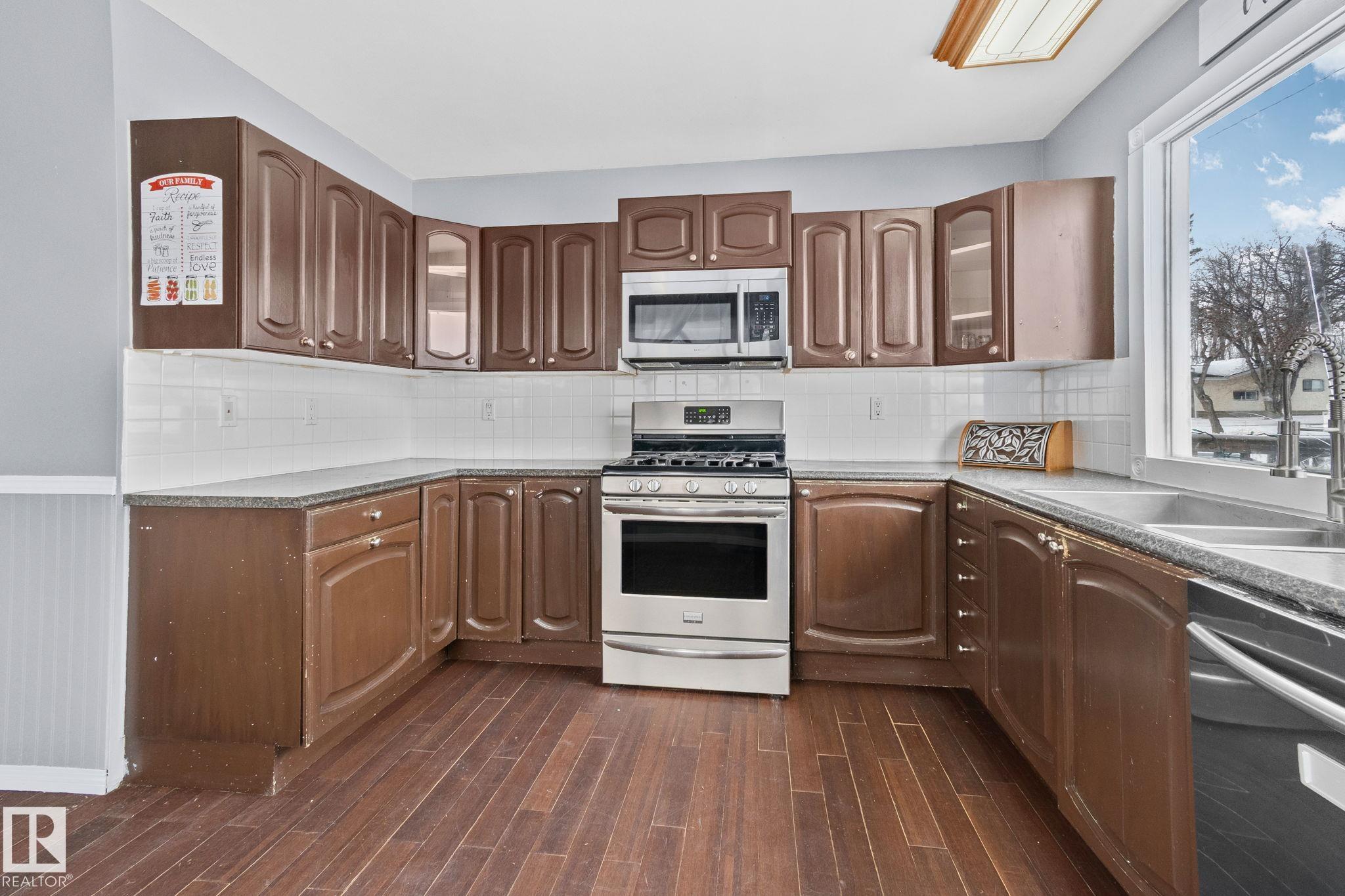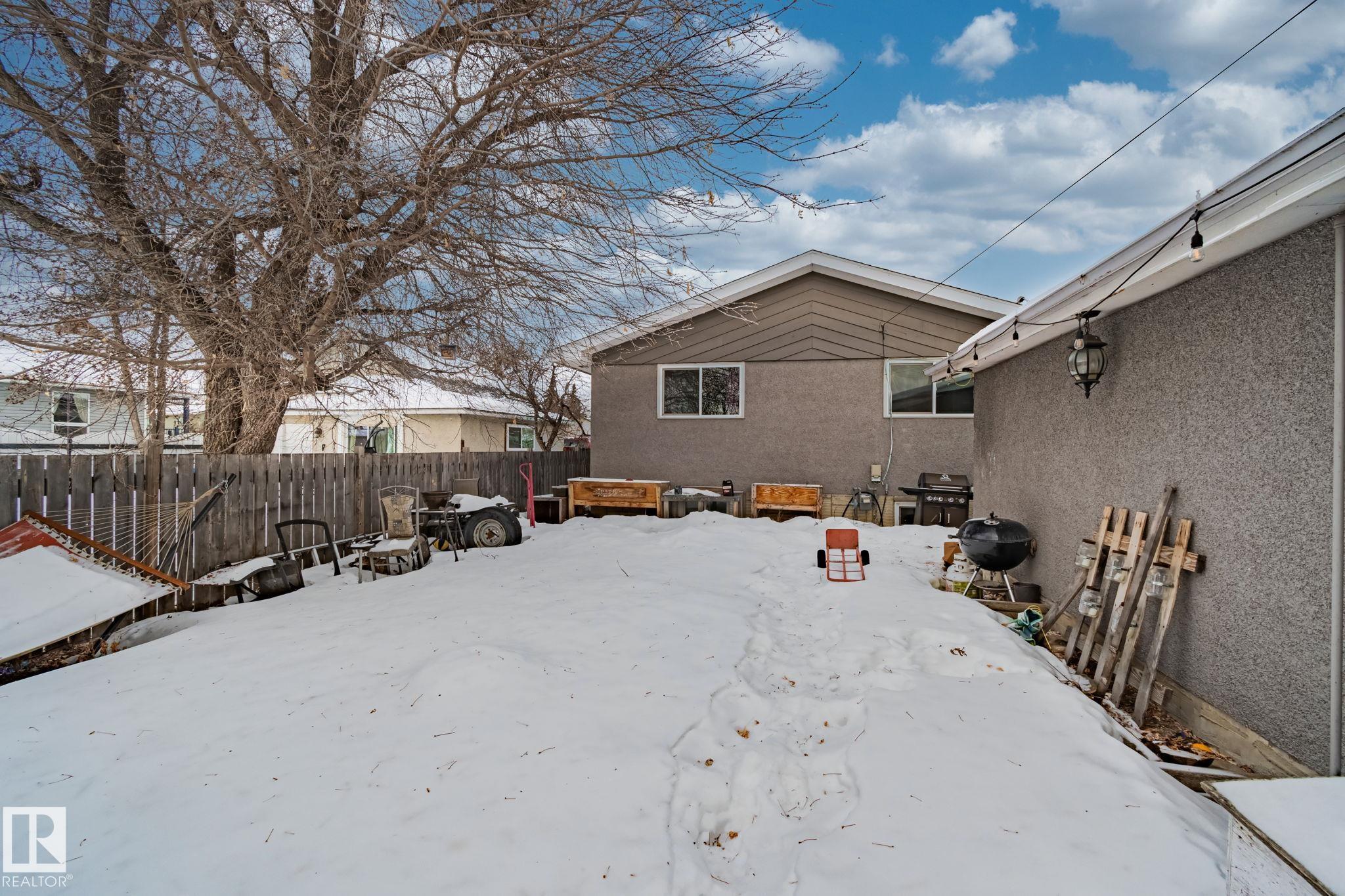 This 1,075 sq. ft. bungalow sits on a very large lot in the family-friendly community of Legal. The main floor offers three good sized bedrooms and a full bathroom, the fully developed basement includes a fourth bedroom, second bathroom, and a cozy gas fireplace, providing flexible living space. The property features a double detached garage with both front-drive as well as rear alley access, offering excellent convenience and investment appeal. With room for kids to play, future development, or added value...