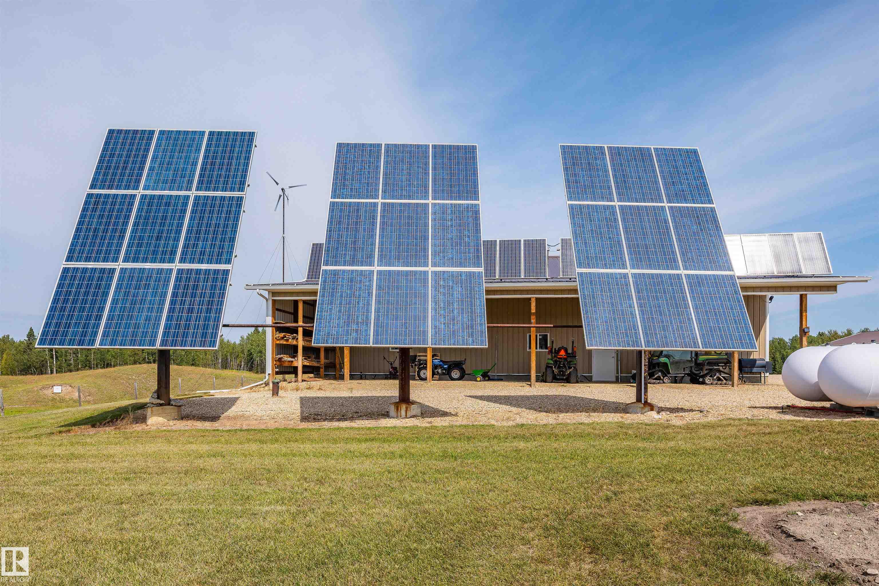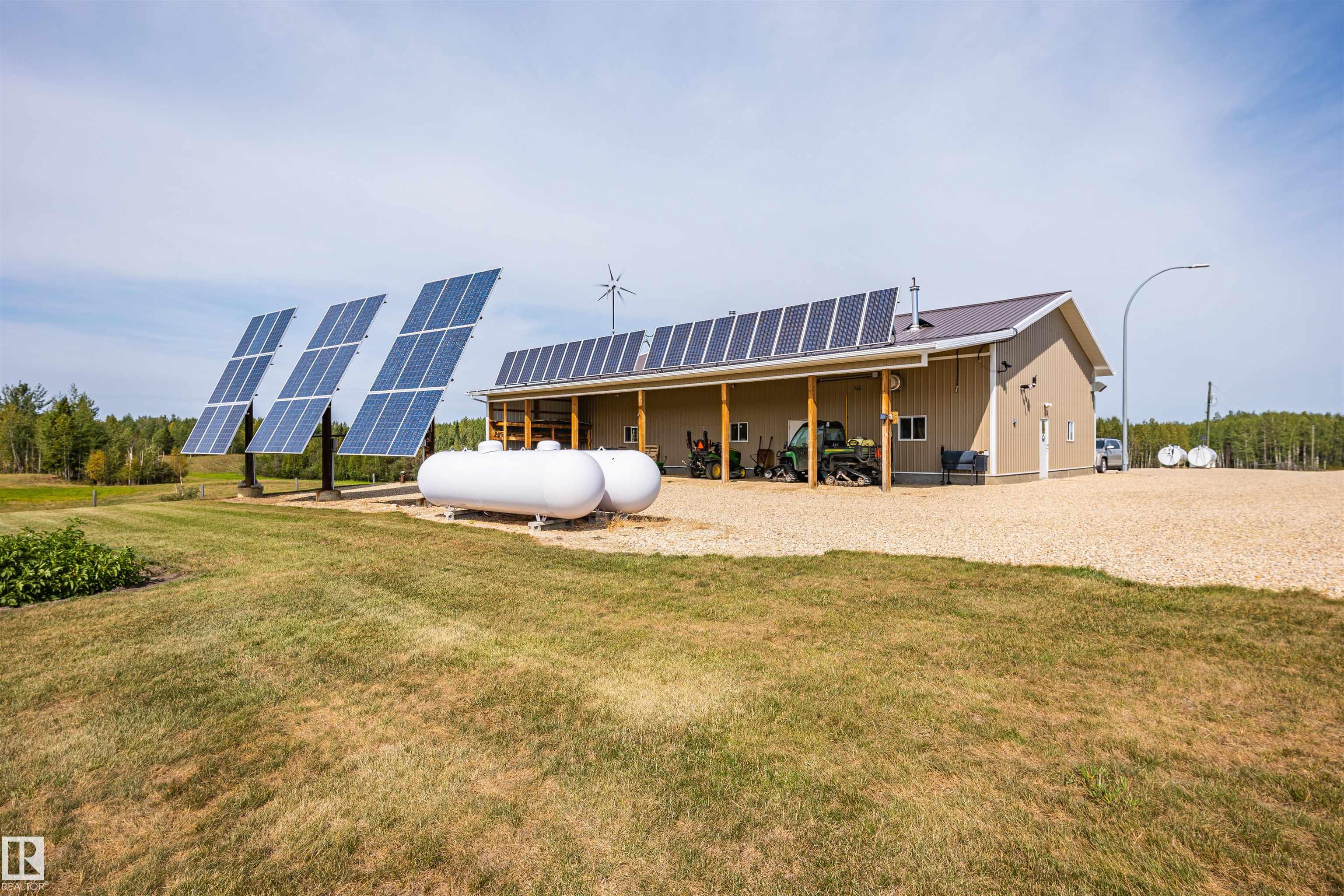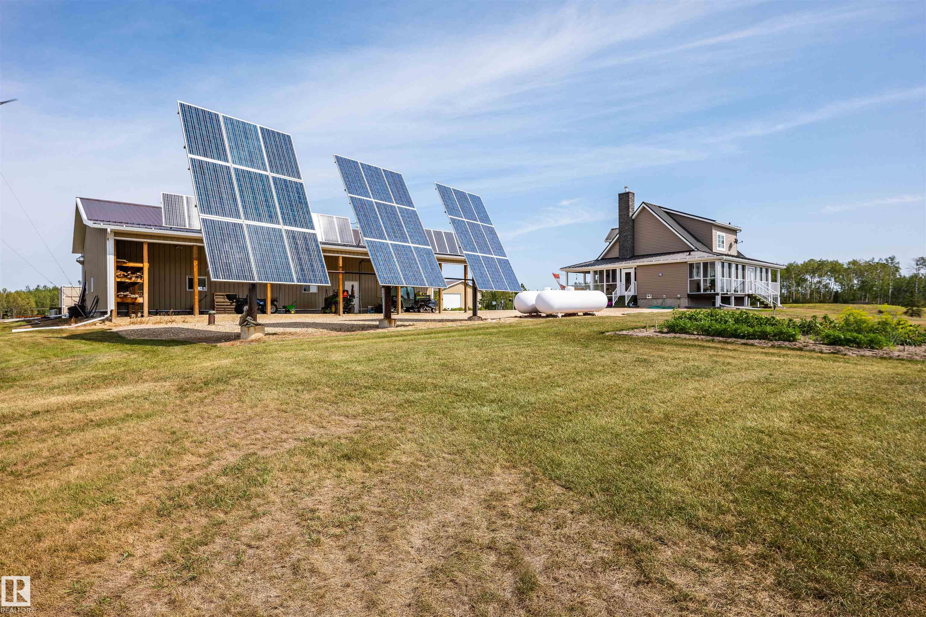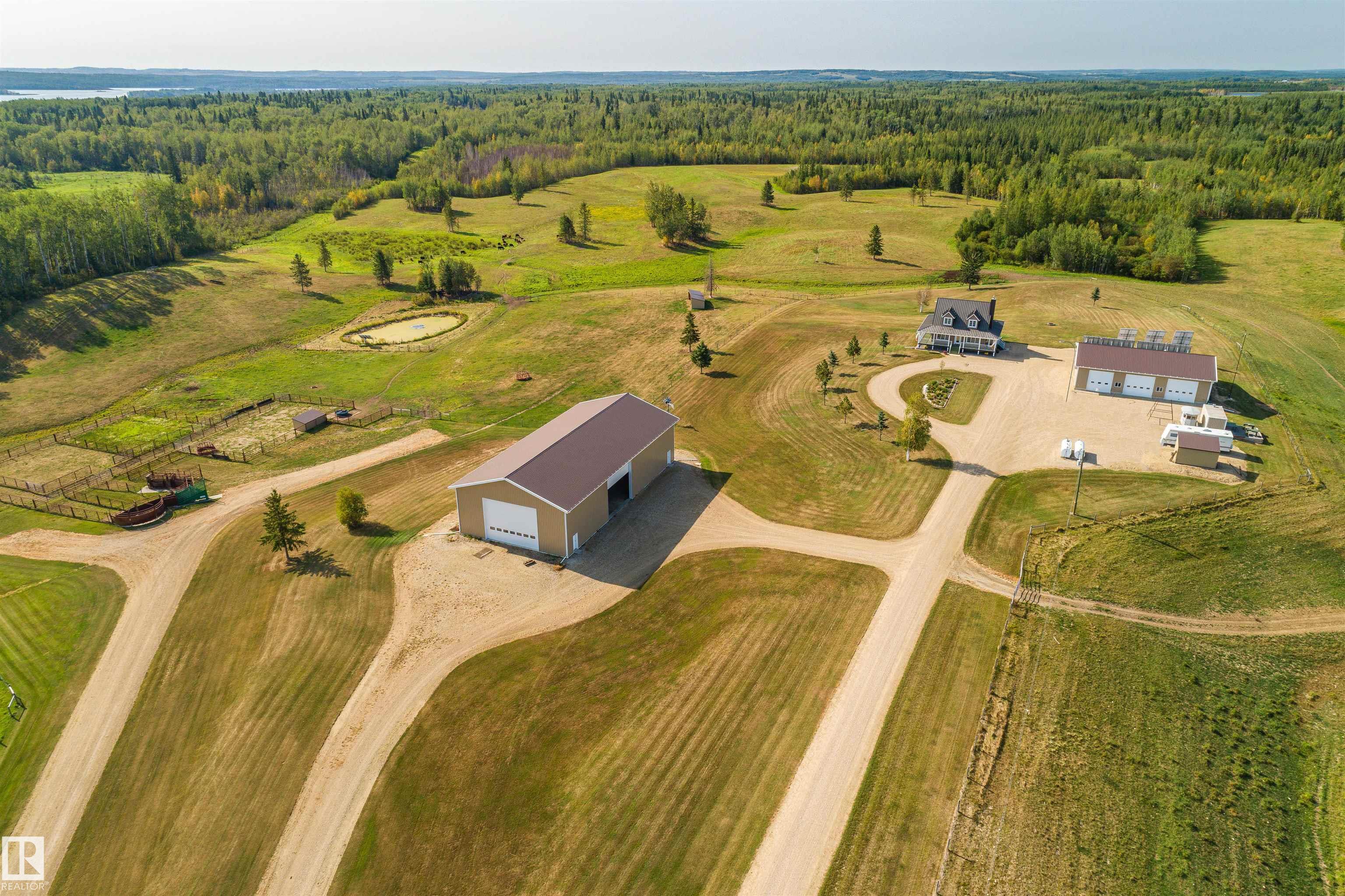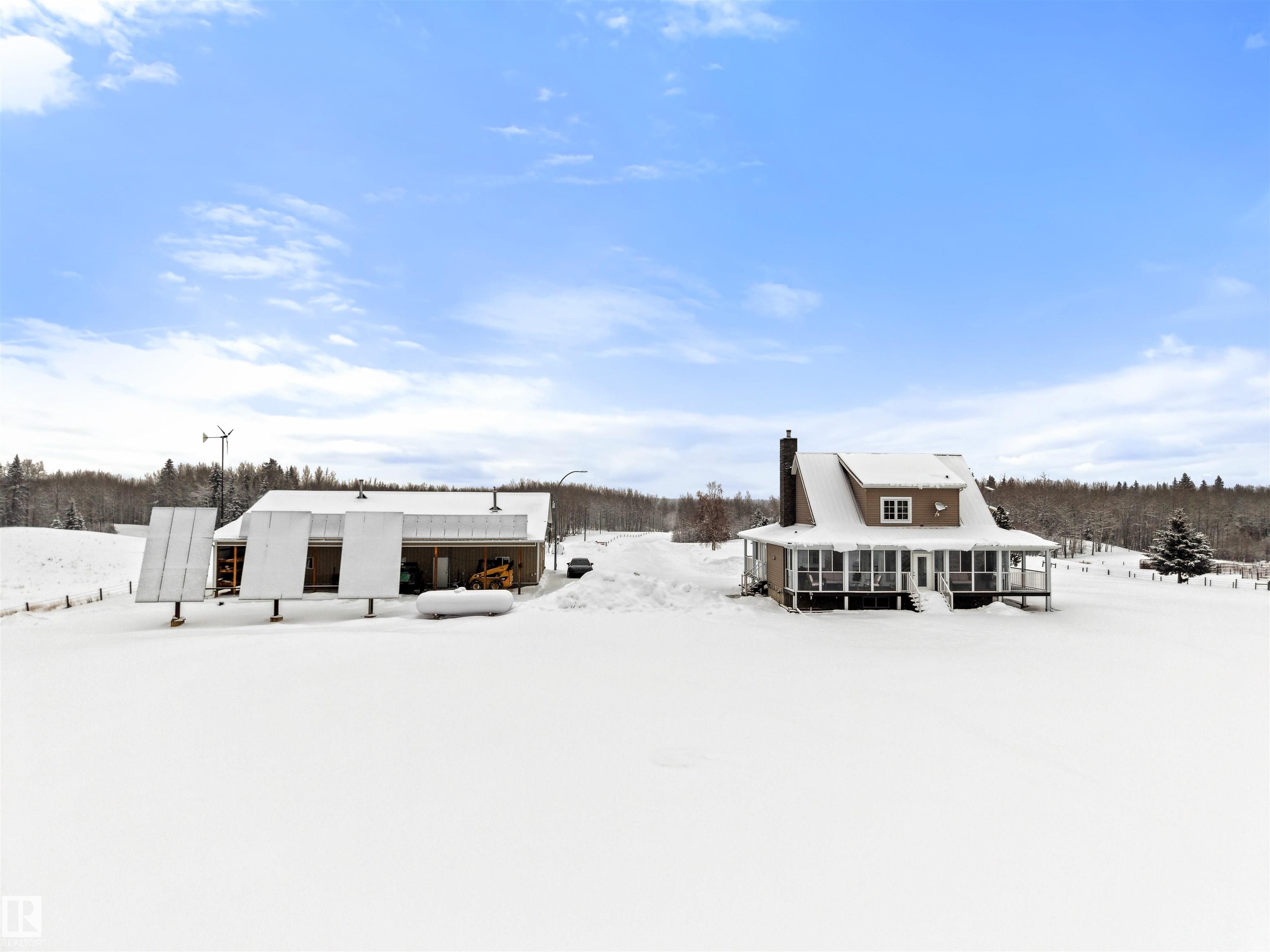 A true trophy property on a quarter section, built for independence, resilience, and land that truly works. Home and buildings are engineered all conditions, relying primarily on on-site power generation—off-grid capable without sacrificing comfort. Cape Cod–inspired home features real hardwood floors, in-floor heat, vaulted ceiling living room with wood-burning fireplace, and a full wraparound balcony to enjoy every view and follow the sun from sunrise to sunsetas the landscape shifts around you. EnerGuide...